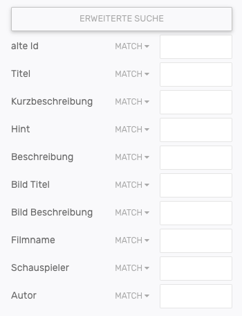 Für jedes Suchfeld können individuelle Übereinstimmungskriterien festgelegt werden.