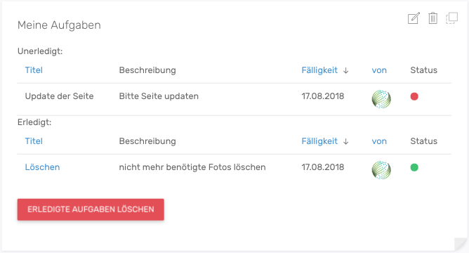 Mit können erledigte Aufgaben gelöscht werden.