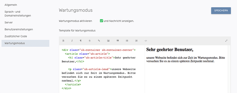 Aktivierung des Wartungsmodus