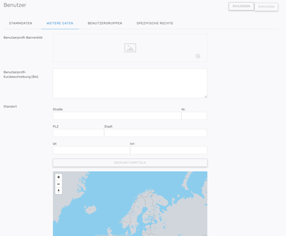 Für die Speicherung des Benutzers müssen folgende Stammdaten-Felder zwingend ausgefüllt sein: