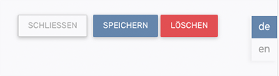 Auf der Detailseite der ausgewählten Seite erscheint neben dem Speichern-Button ein Sprachumschalter mit den definierten Sprachen (Hier: Deutsch, DE und Englisch, EN):