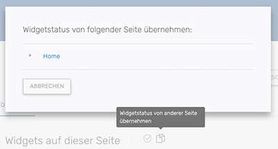 Durch Klick auf eine Seite in dieser Auswahlliste wird die Zuweisung der Widgets von dieser Seite auf die aktuelle Seite übernommen.