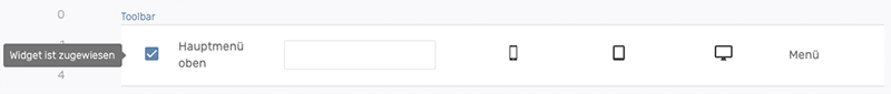 Möchten Sie Widgets einer Seite zuordnen, so navigieren Sie zunächst auf den Reiter Widgetzuordnung.