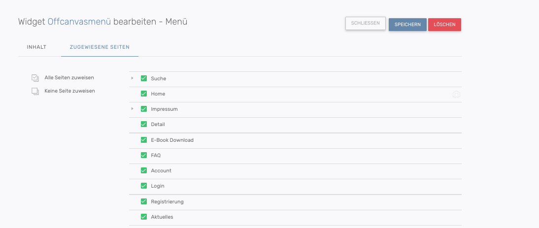 Möchten Sie das Widget auf allen Seiten verwenden, können Sie über "Alle Seiten zuweisen" die Checkbox jeder einzelnen Seite setzen.