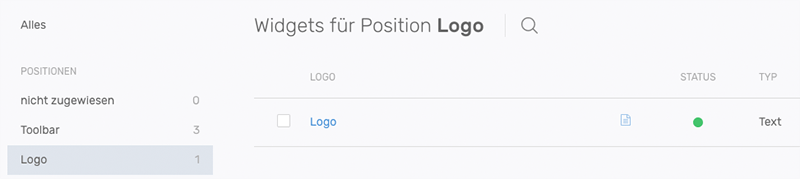 Die Positionsliste dienst auch als Anzeigefilter. Durch Klick auf eine Position, werden nur noch Widgets gezeigt, die an dieser Position zugeordnet sind: